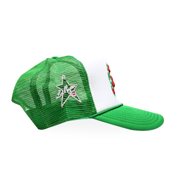 WHITE & GREEN, FOAM & MESH TRUCKER HAT