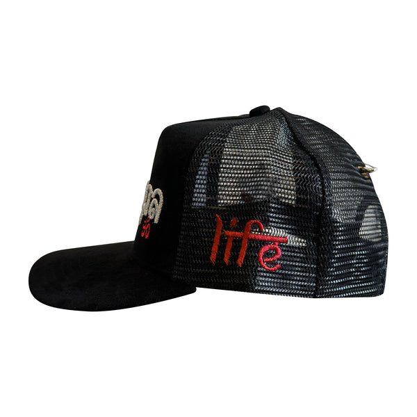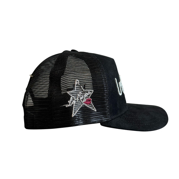 BLACK SUEDE 🕉️ TRUCKER HAT